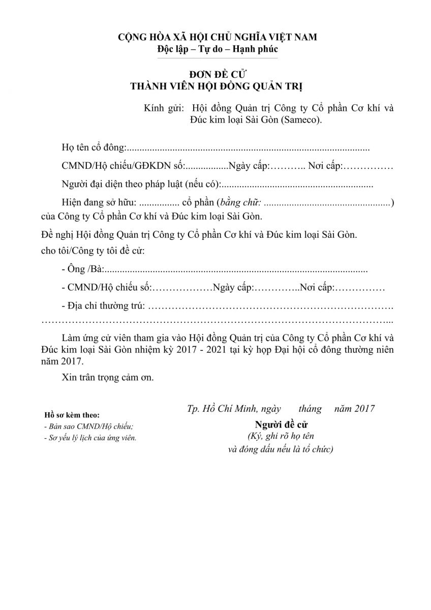 ĐƠN ĐỀ CỬ THÀNH VIÊN HỘI ĐỒNG QUẢN TRỊ,THÀNH VIÊN BAN KIỂM SOÁT ,SƠ...