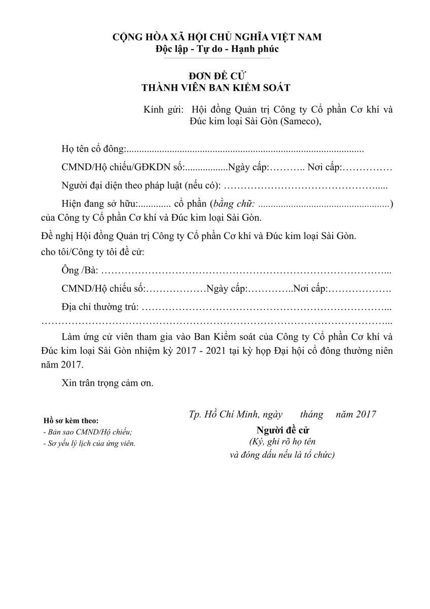 ĐƠN ĐỀ CỬ THÀNH VIÊN HỘI ĐỒNG QUẢN TRỊ,THÀNH VIÊN BAN KIỂM SOÁT ,SƠ YẾU LÝ LỊCH