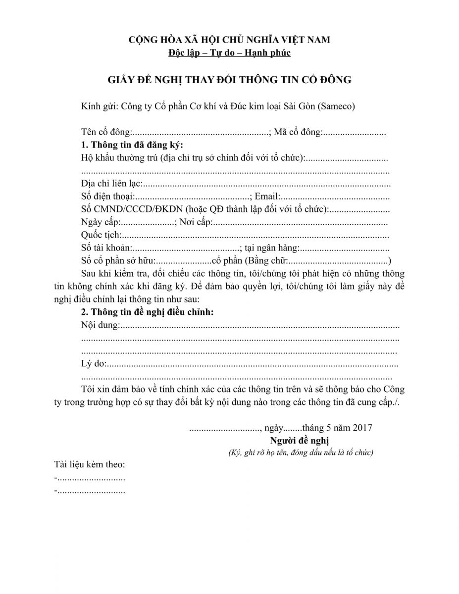 Giấy đề nghị thay đổi thông tin